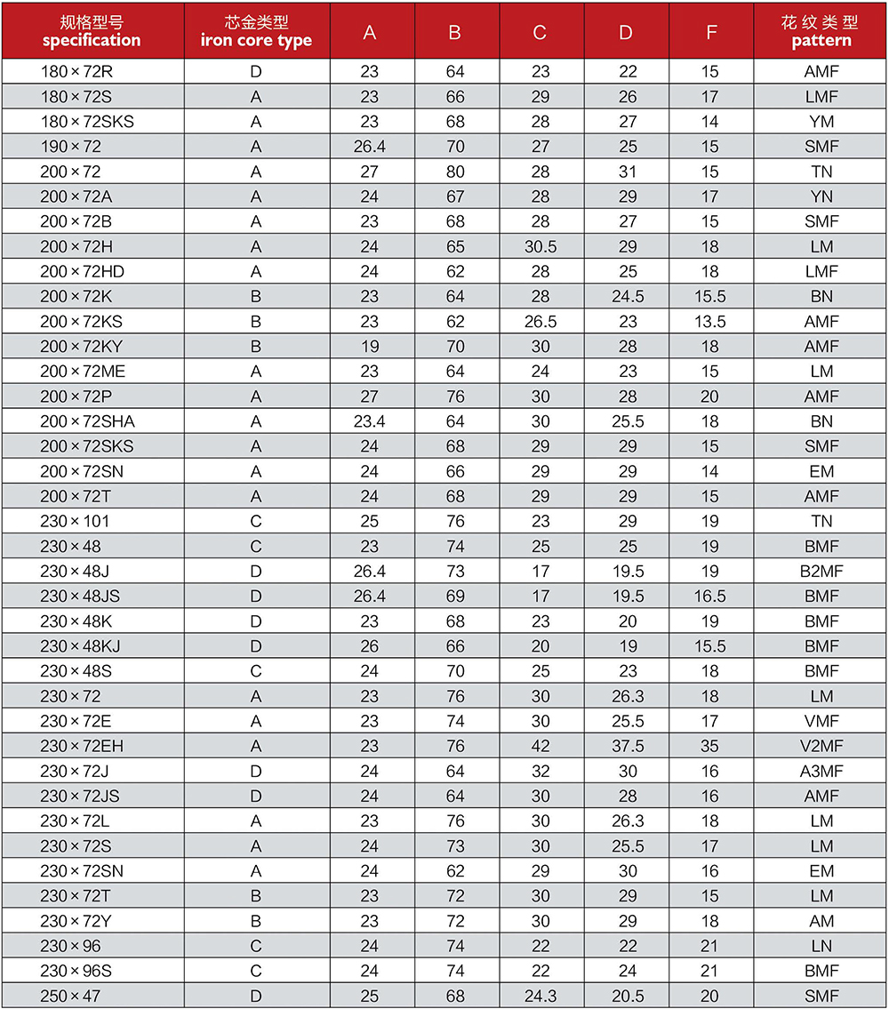 农机橡胶履带型号